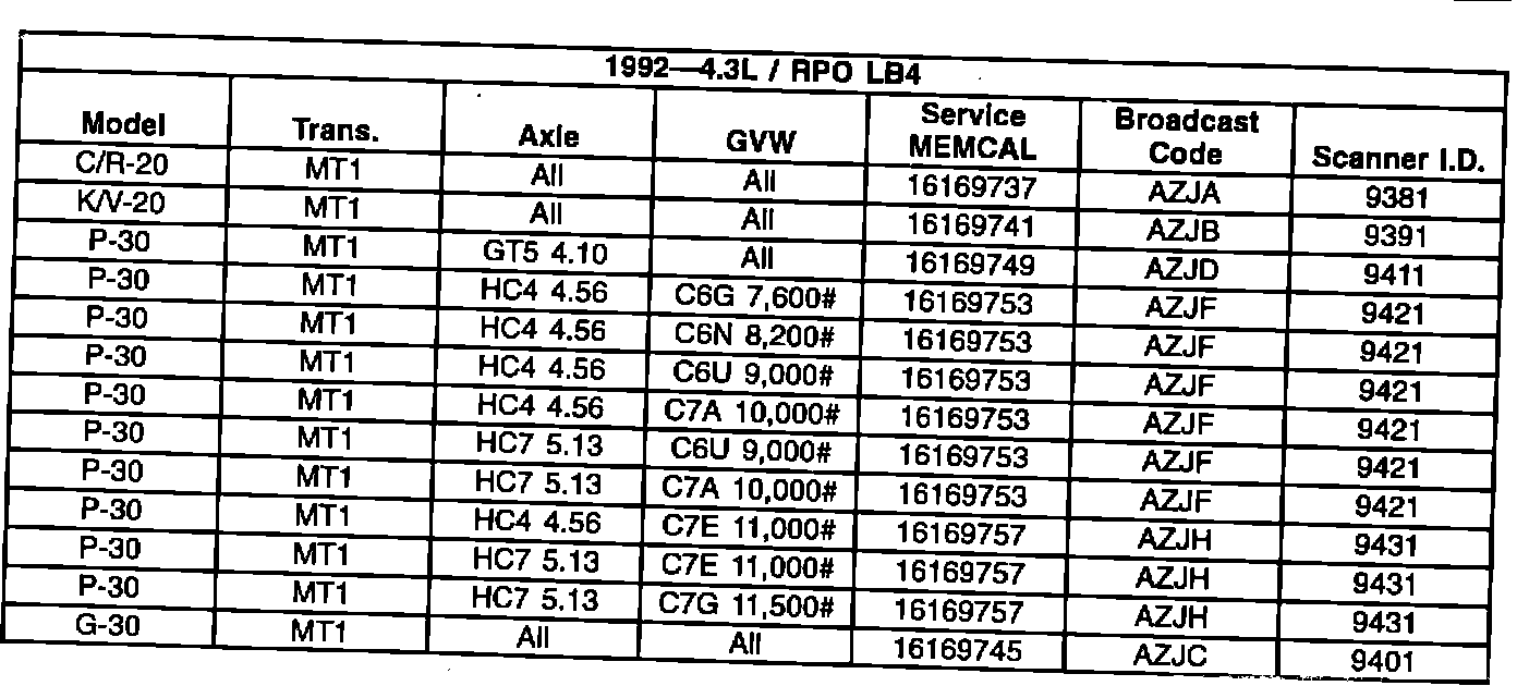 1992 - 4.3L/RPO LB4