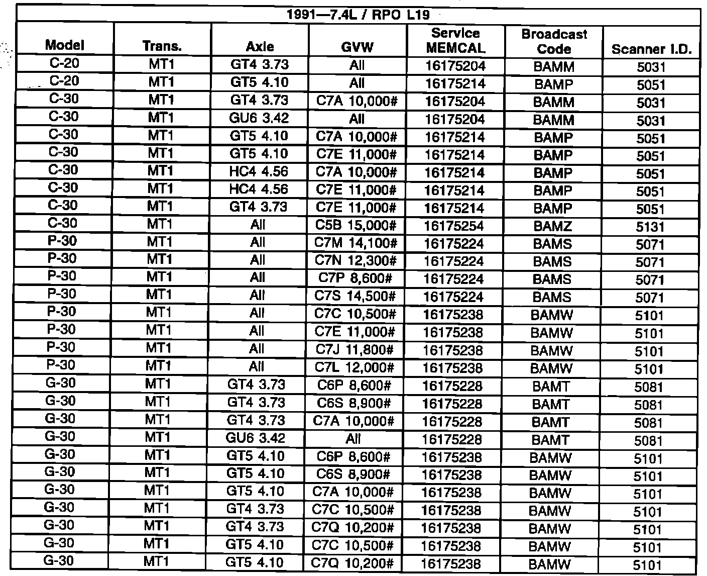 1991 - 7.4L/RPO L19