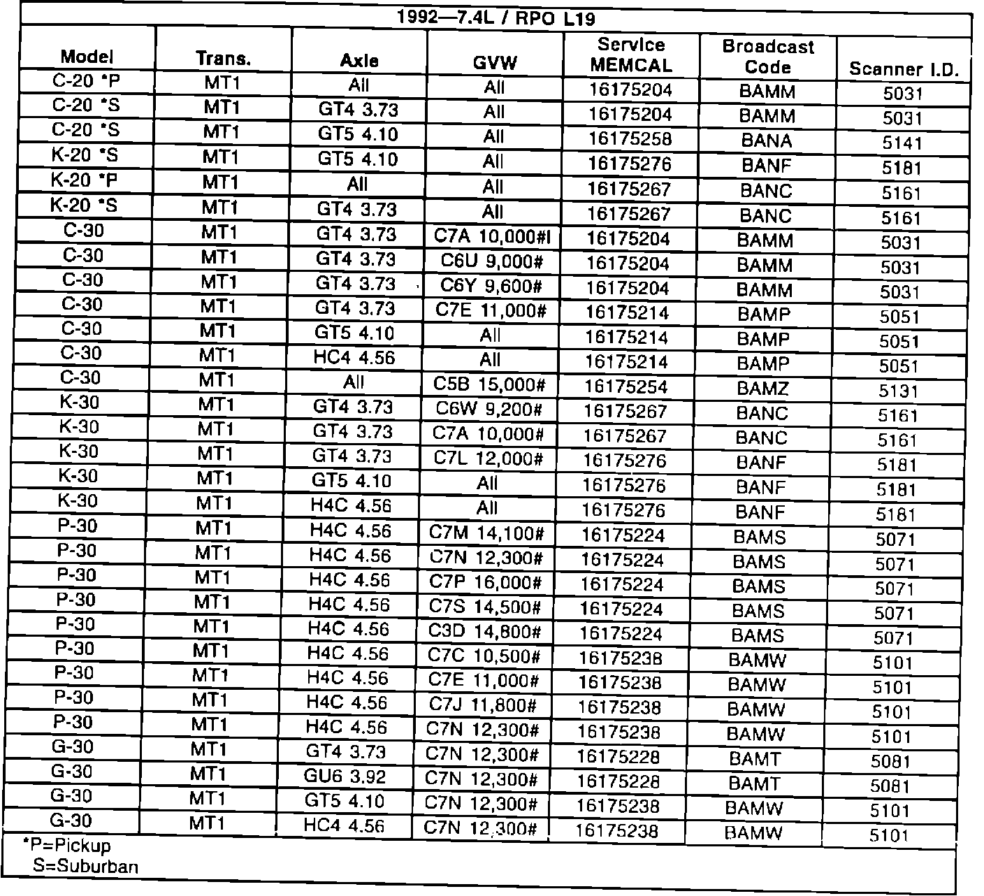 1992 - 7.4L/RPO L19