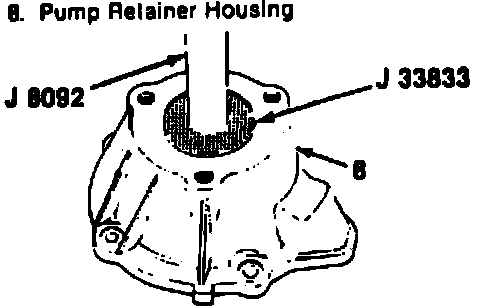 4. Install bearing to pump retainer housing using J-33833 and J-8092.