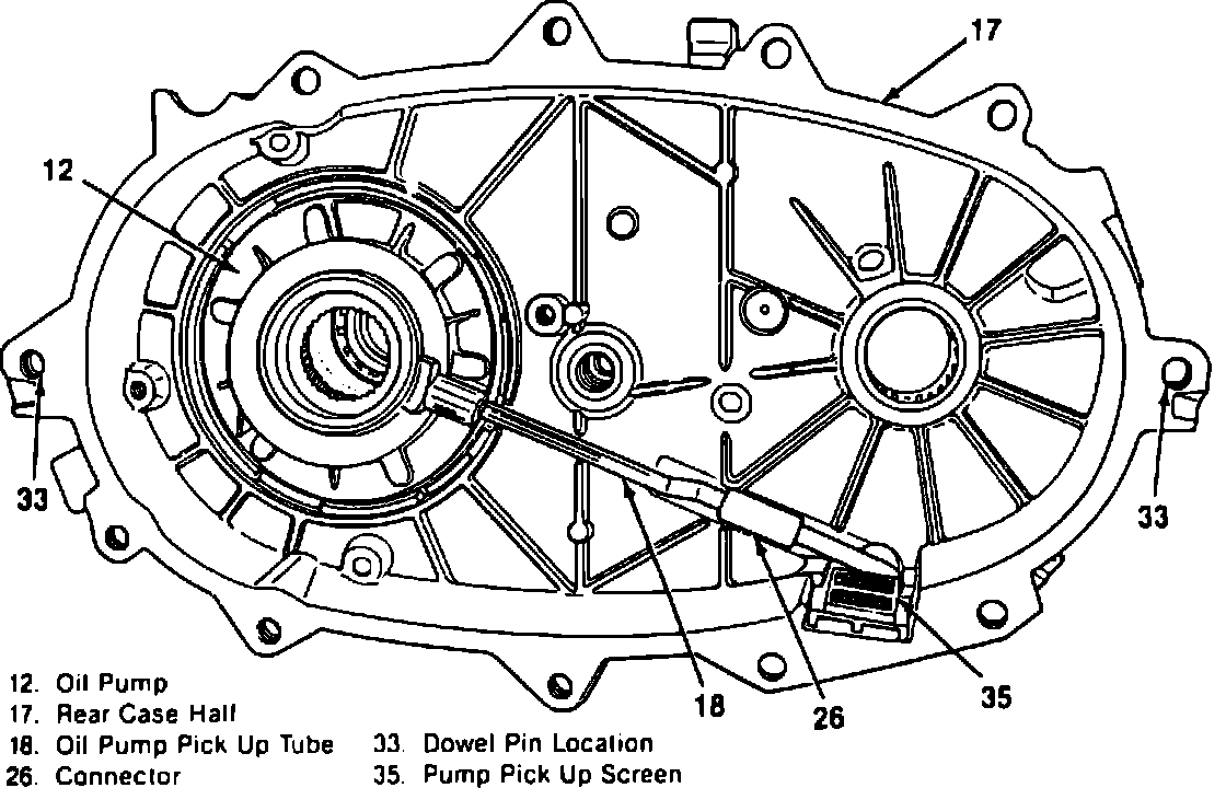 Fig. 30 Oil Pump Pickup Screen Doweled Case Holes. New Process Models 231, 233 & 241 Transfer Cases: