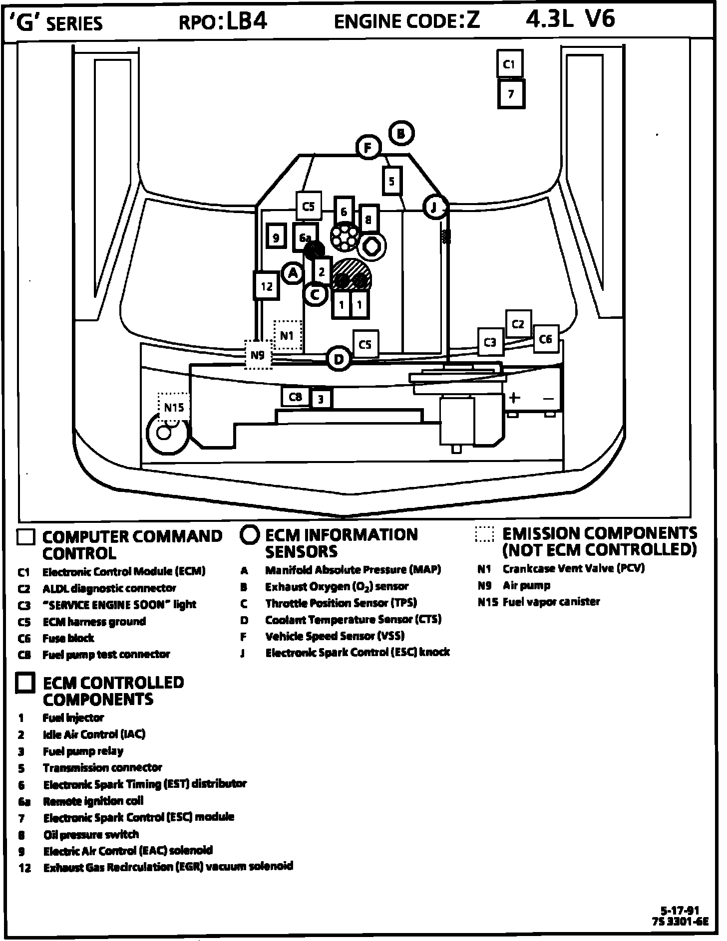 G 1500 1/2 Ton Van V6-262 4.3L VIN Z
