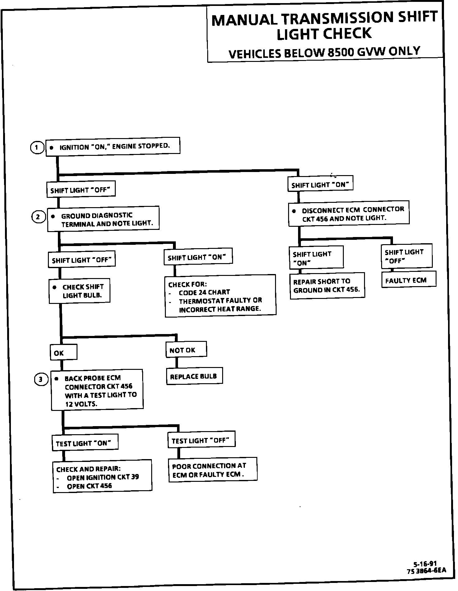 1. This should not turn "ON" the shift light. If the light is "ON", there is a short to ground in CKT 456 wiring, or a fault in the ECM.