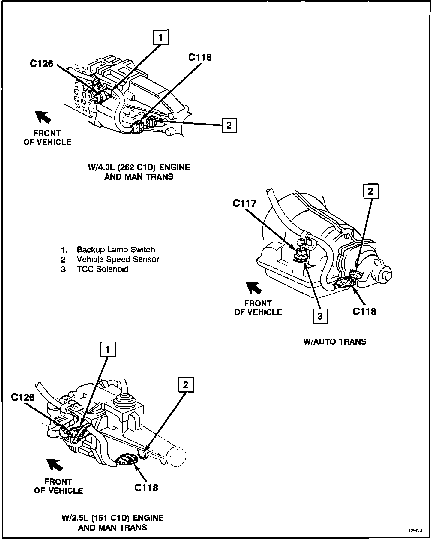 Speed Sensor And Backup Lamp Switch Wiring - Two-Wheel Drive Models: