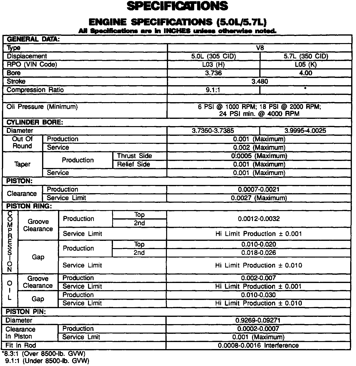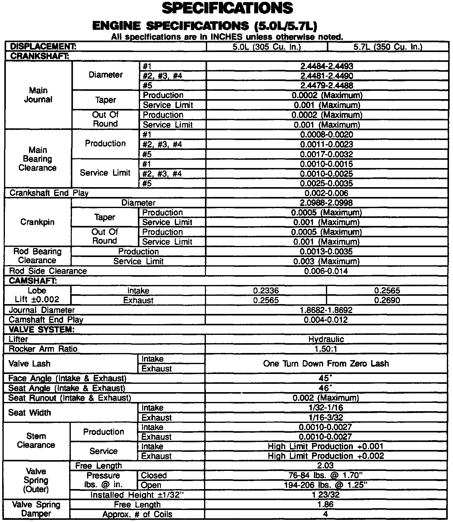 Engine Specifications: