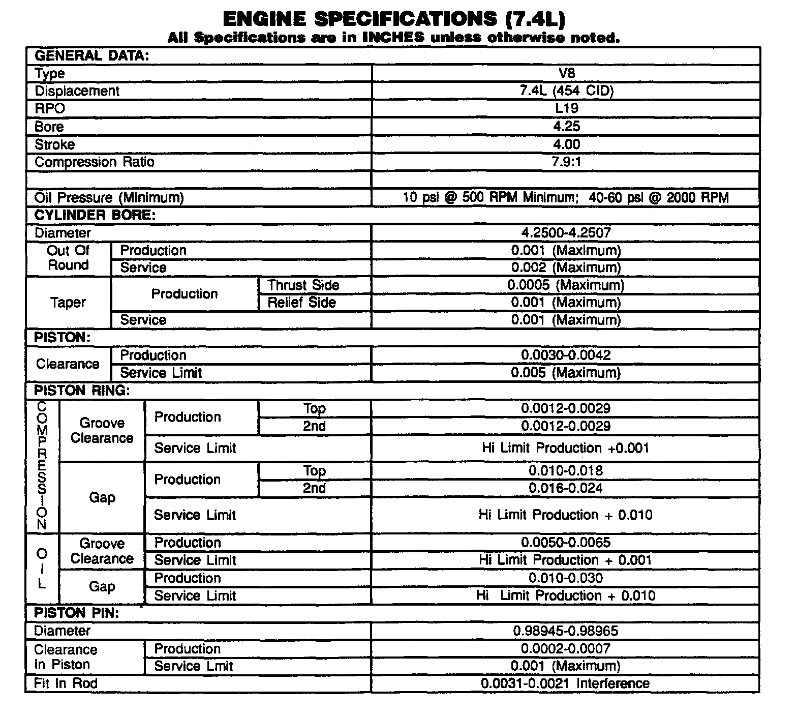 Engine Specifications: