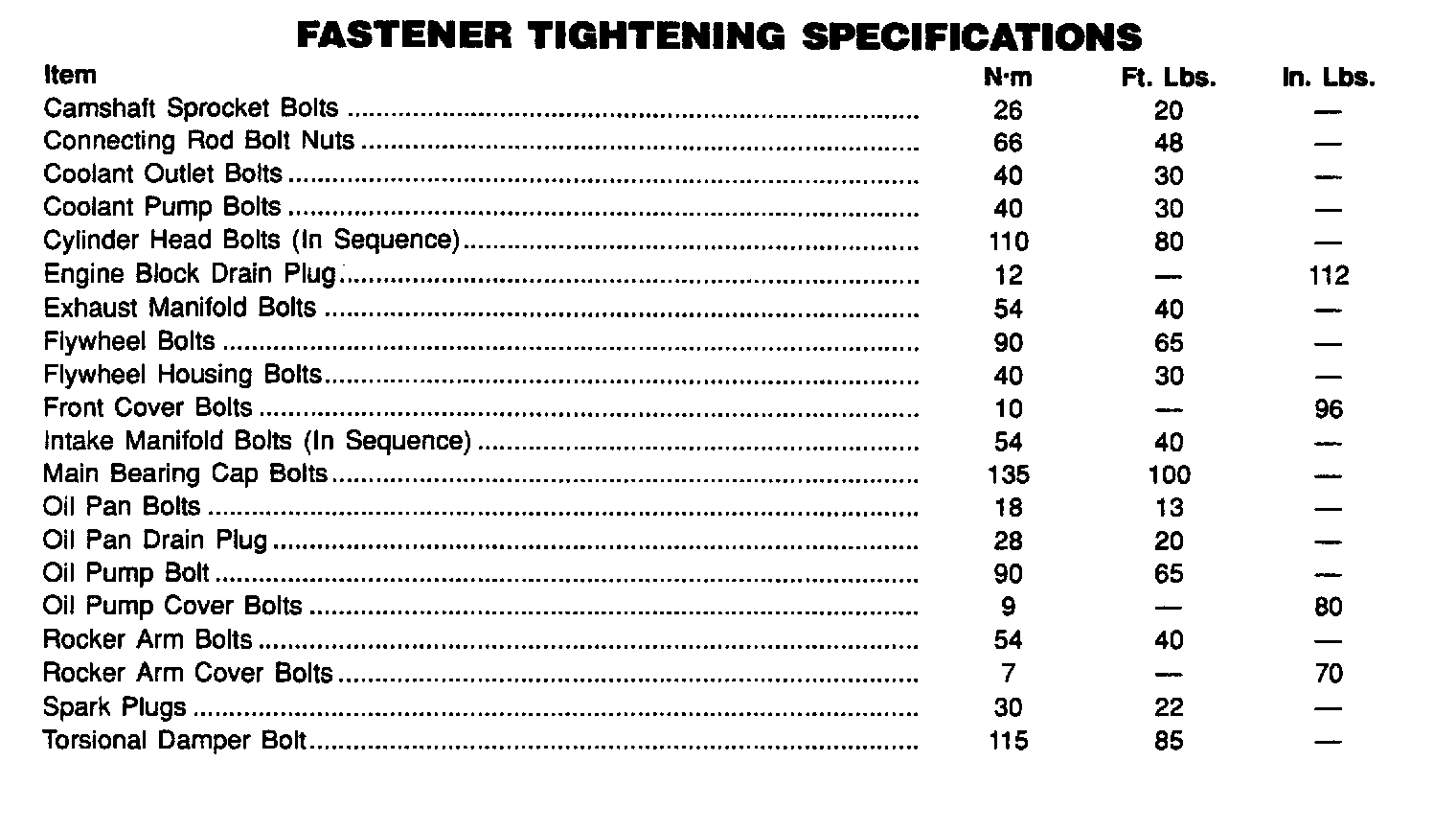 Torque Specifications: