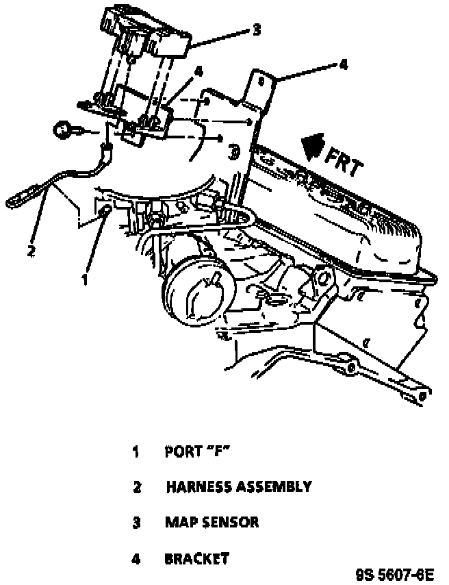 The Manifold Absolute Pressure (MAP) Sensor is located on a bracket, mounted to the intake manifold on the passenger side next to the throttle body assembly.