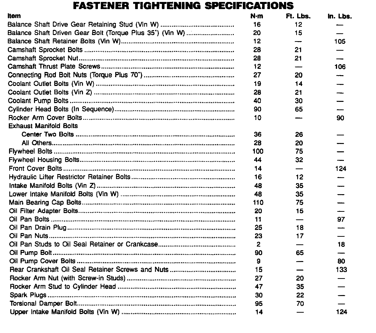 Torque Specifications: