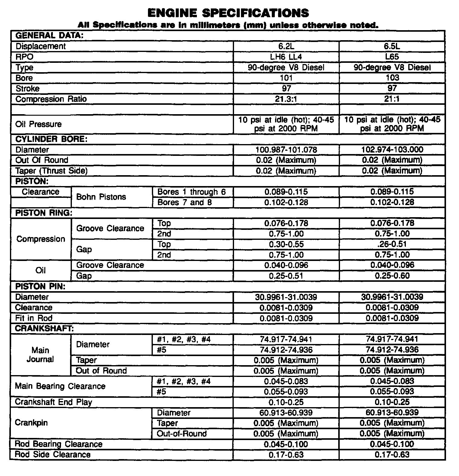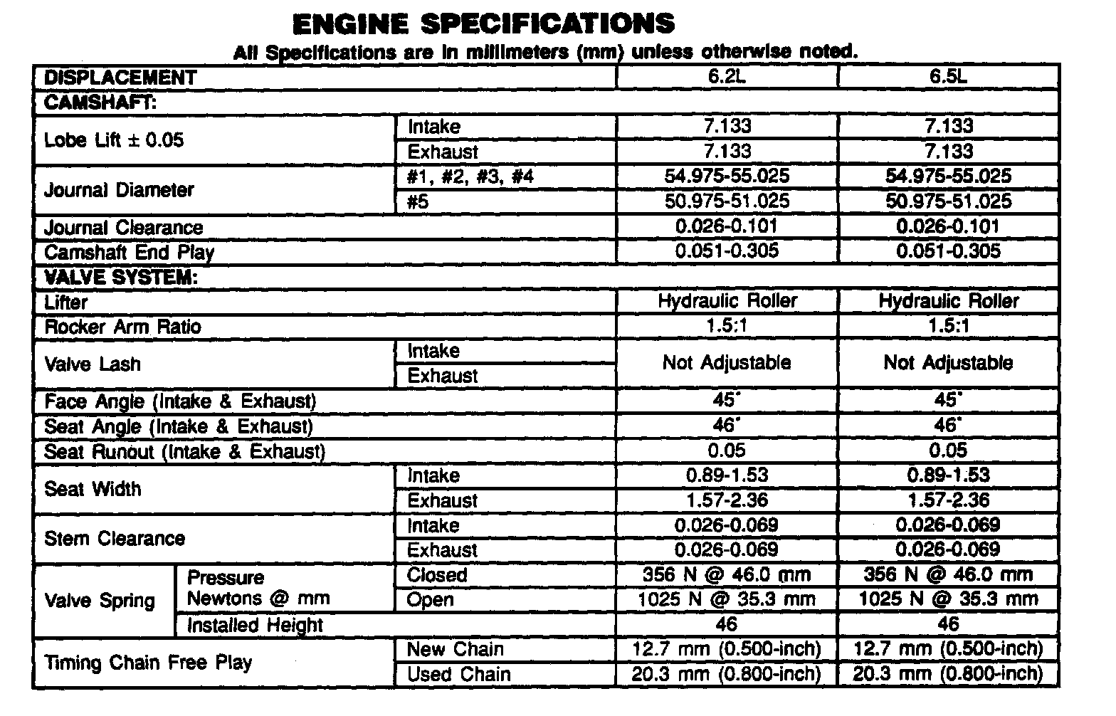 Engine Specifications: