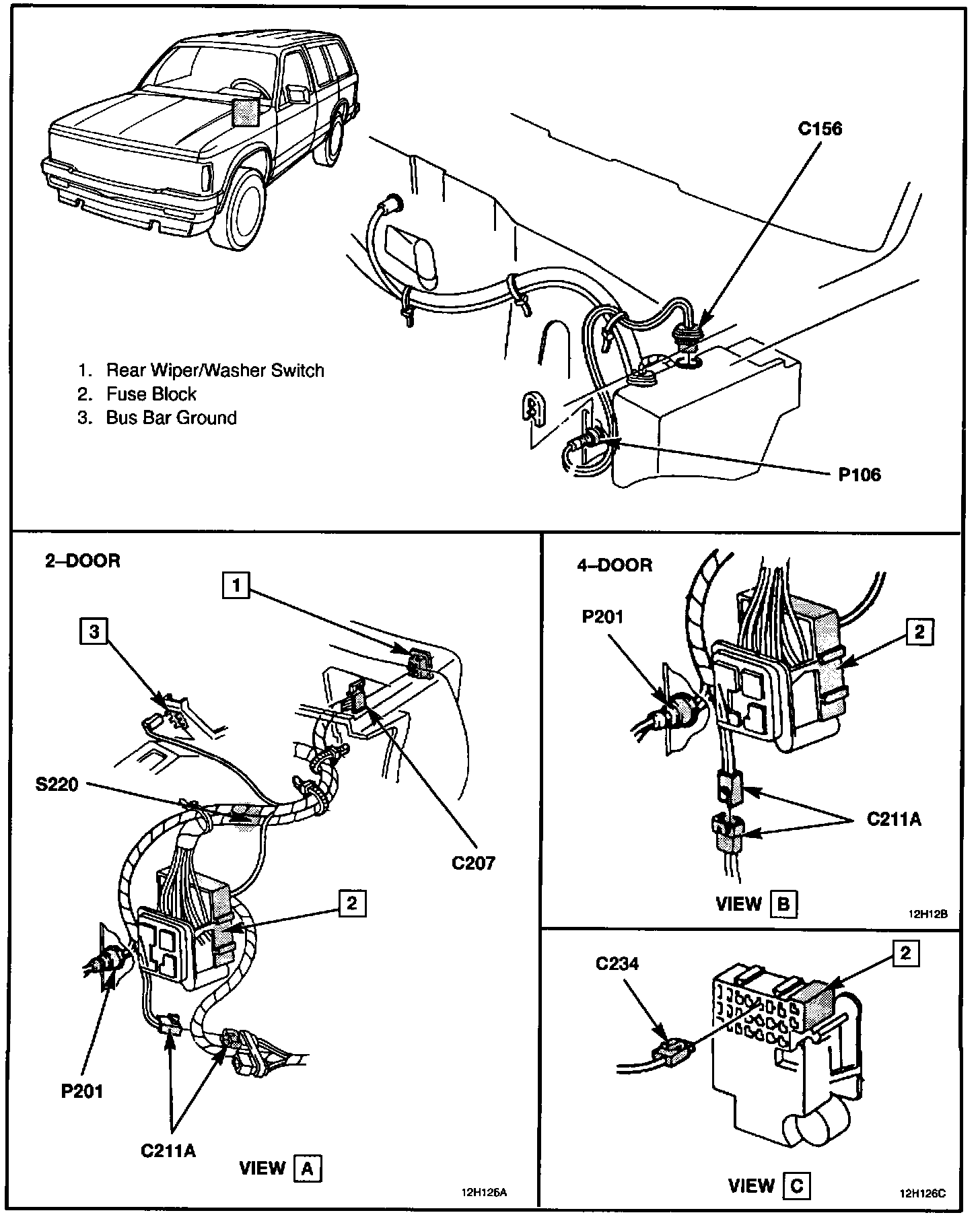 Rear Wiper/Washer Wiring: