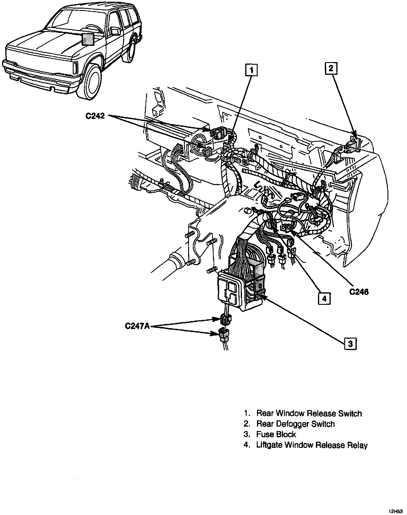 Rear Window Release Forward Wiring: