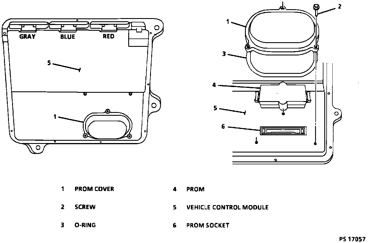 Replacement control module is supplied without a PROM, so care should be used when removing it from the defective control module, because it will be reused in the new control module.