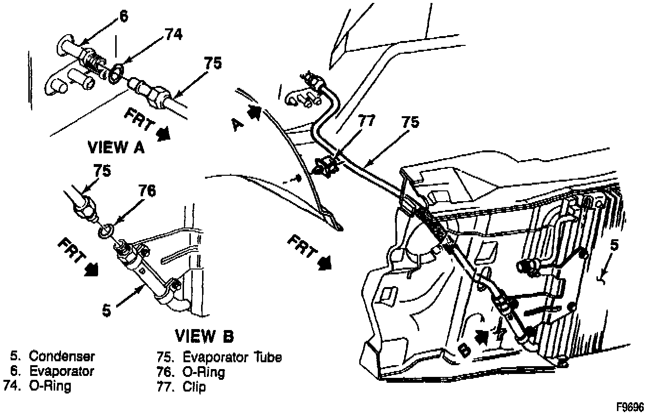 5. Expansion (orifice) tube from the condenser outlet pipe, using J 26549-E or equivalent.