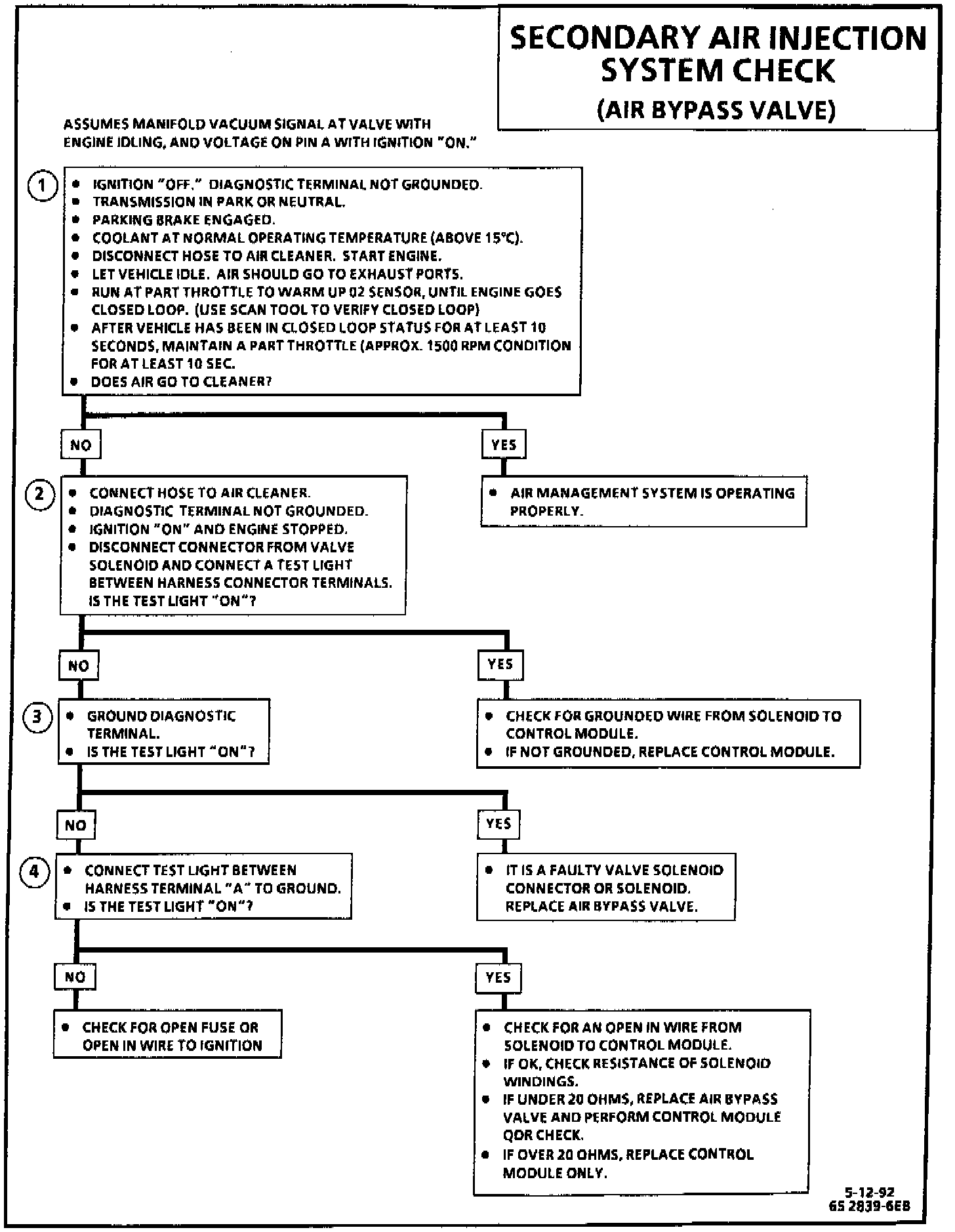 1. This is a system performance test, to be performed if a malfunction is suspected or observed. When the vehicle goes to "Closed Loop," air will switch from the ports and divert to the air cleaner. (Under normal, steady-state condition, and vehicle not at idle.)