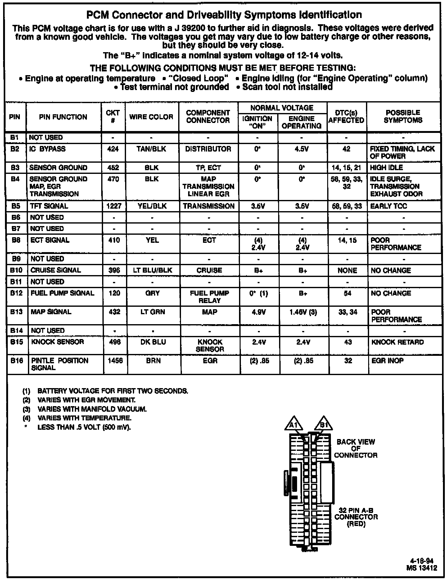 PCM Connector Pin-Out: