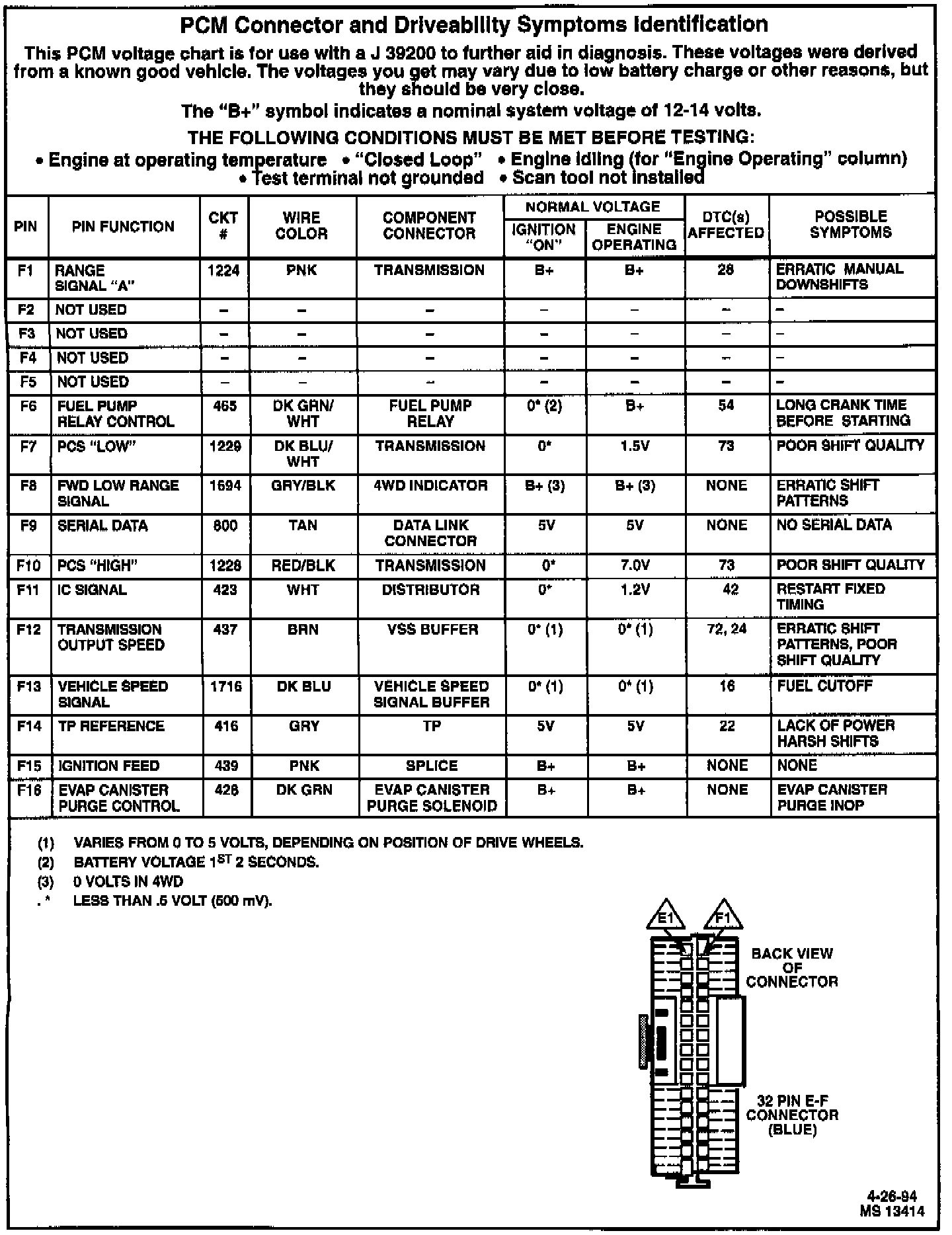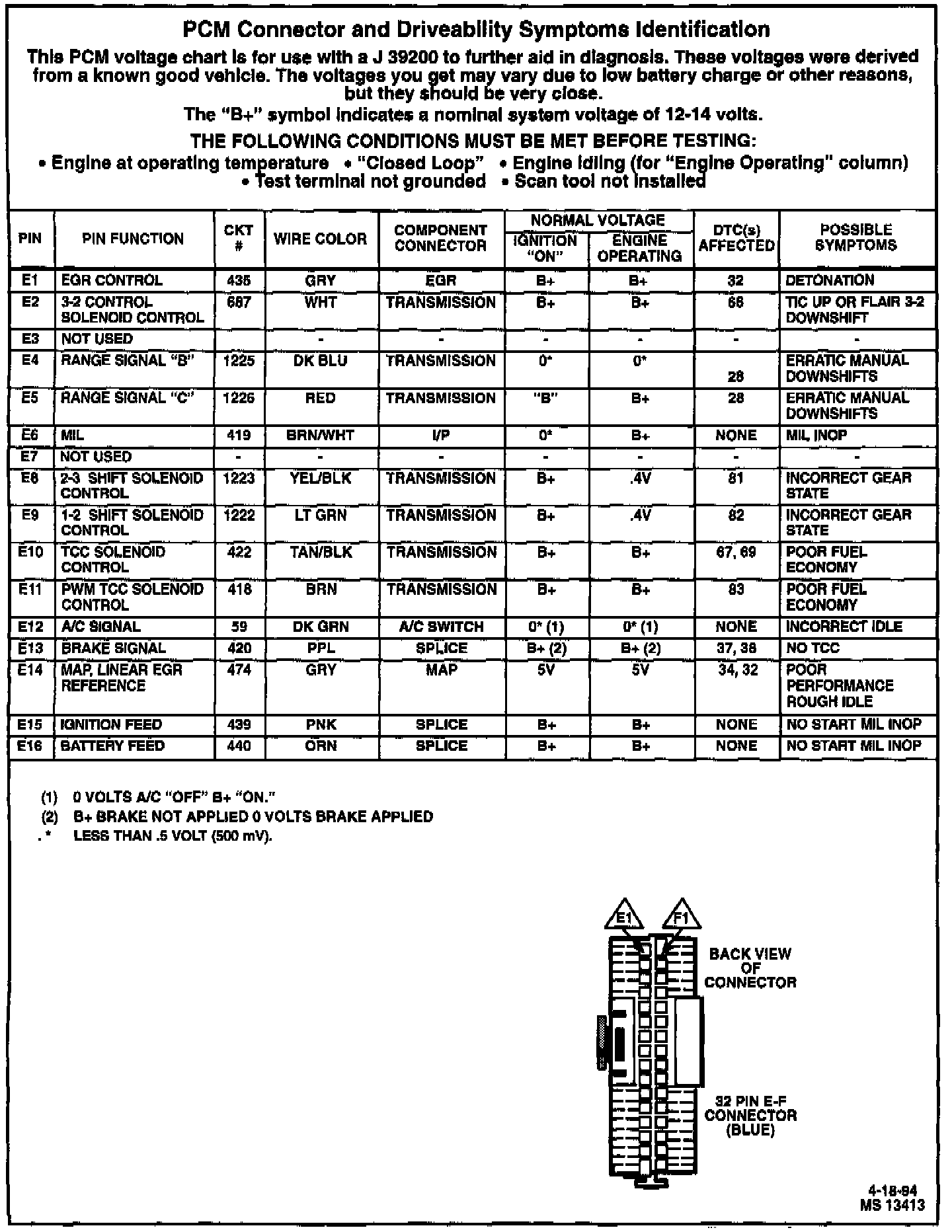 PCM Connector Pin-Out: