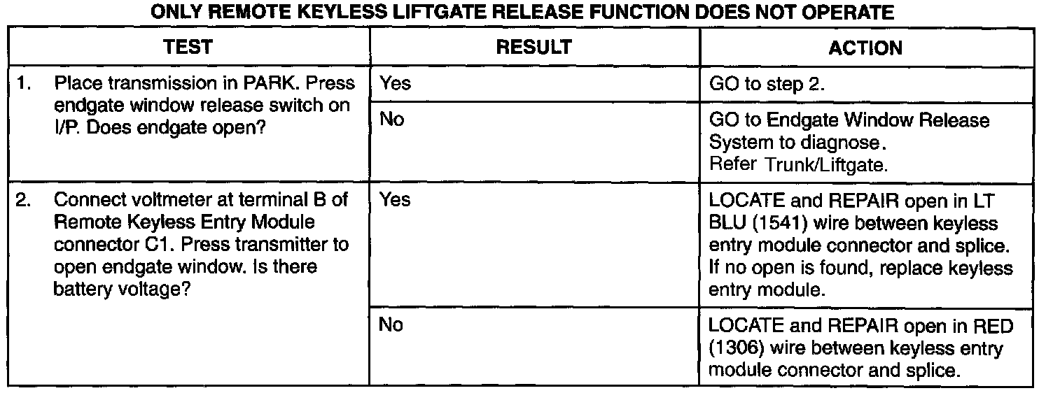 Only Remote Keyless Liftgate Release Function Does Not Operate: