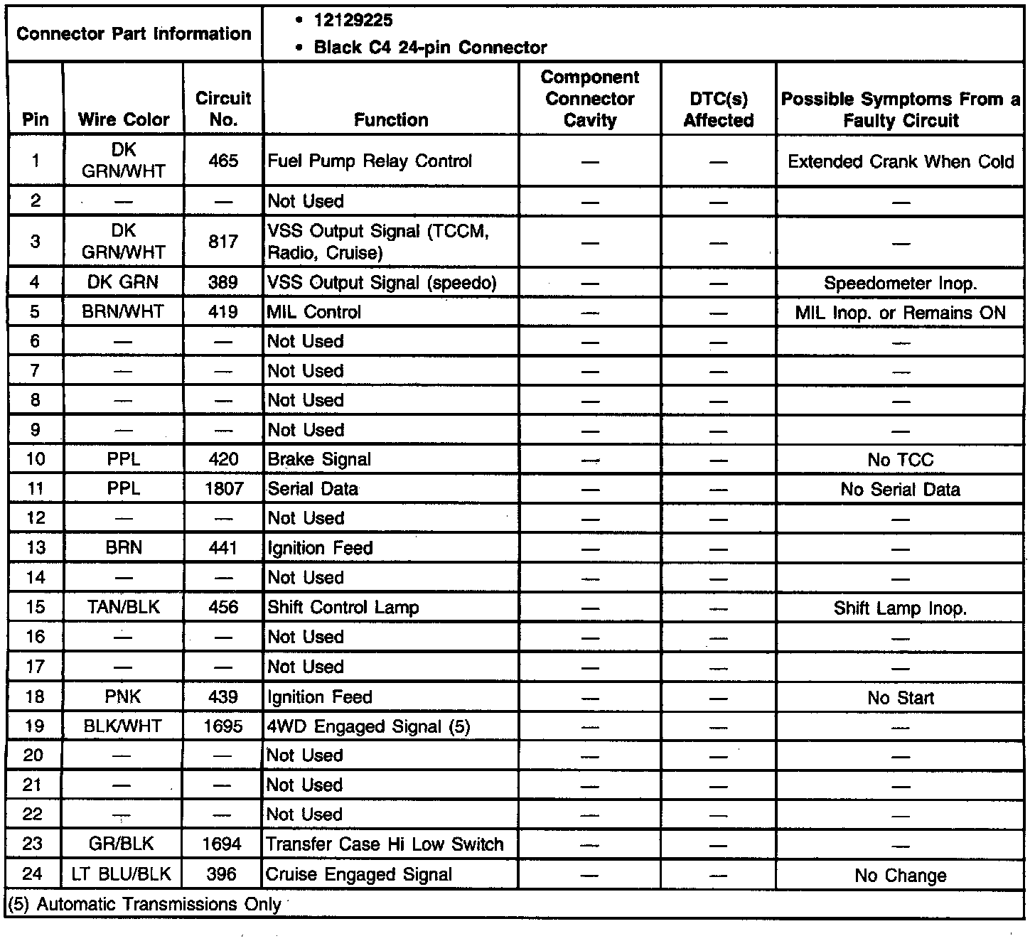 C 1500 Truck 2WD V8-305 5.0L VIN M SFI
