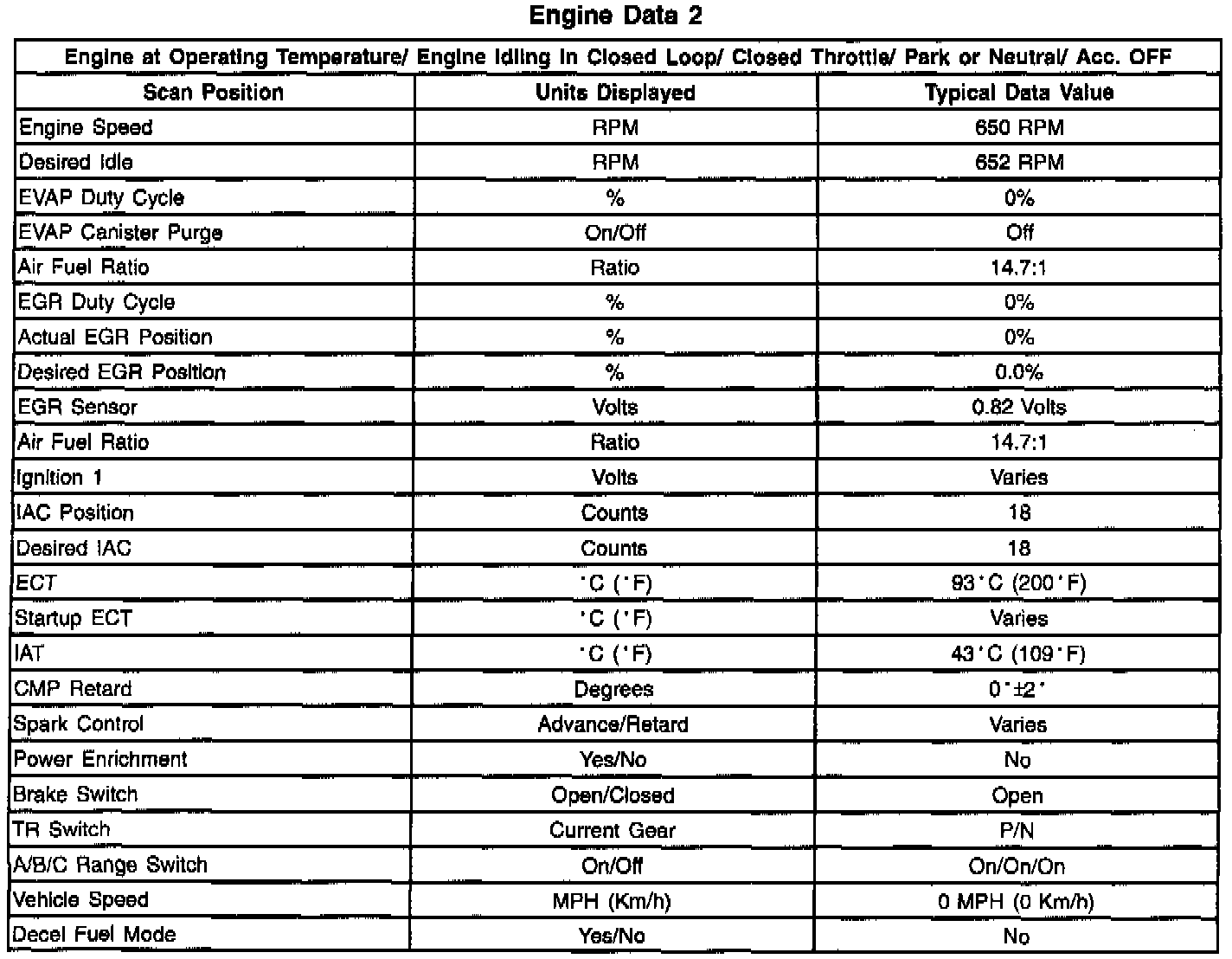 Scan Tool Data List