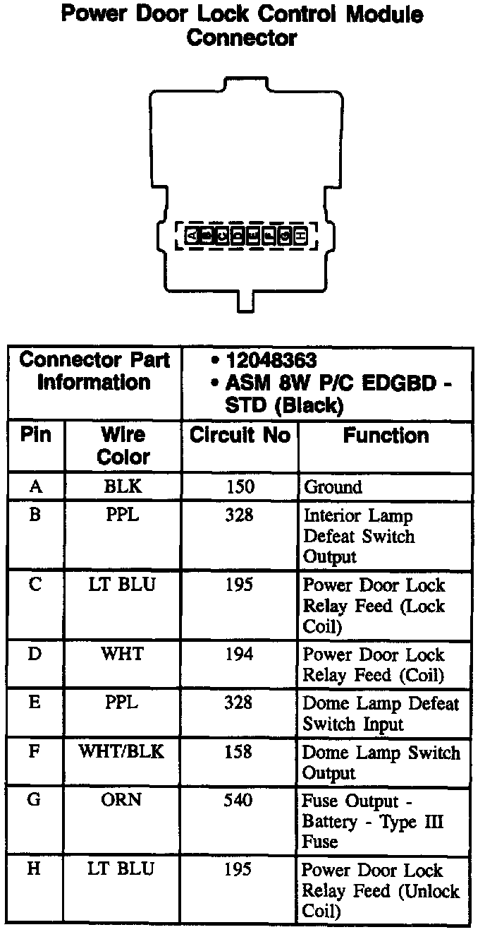 Power Door Lock Control Module Connector: