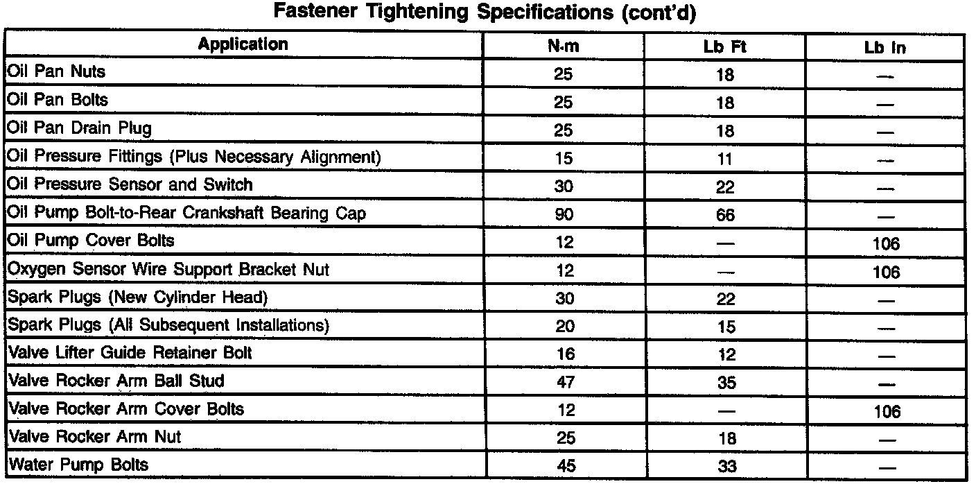Fastener Tightening Specifications - Engine