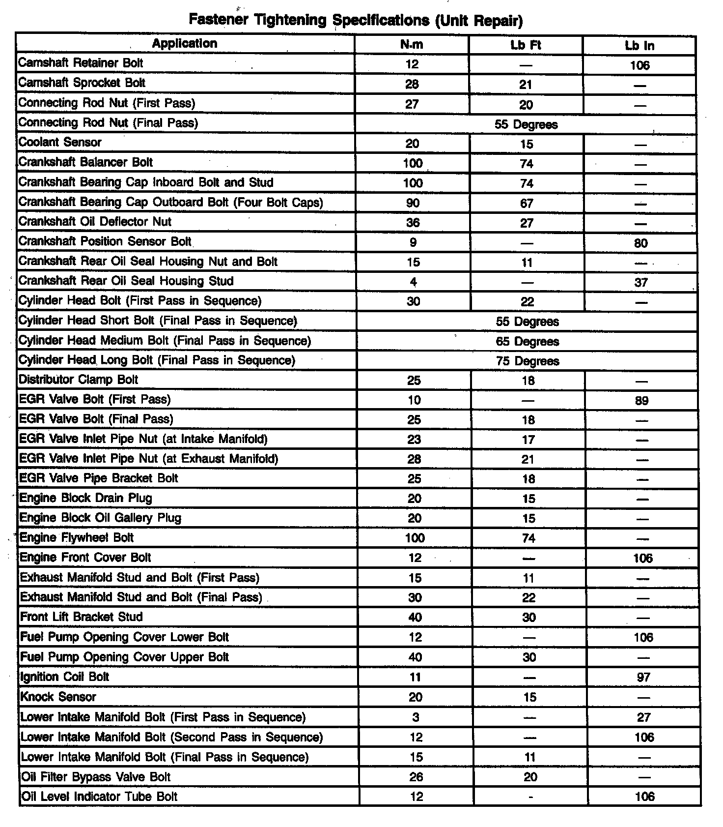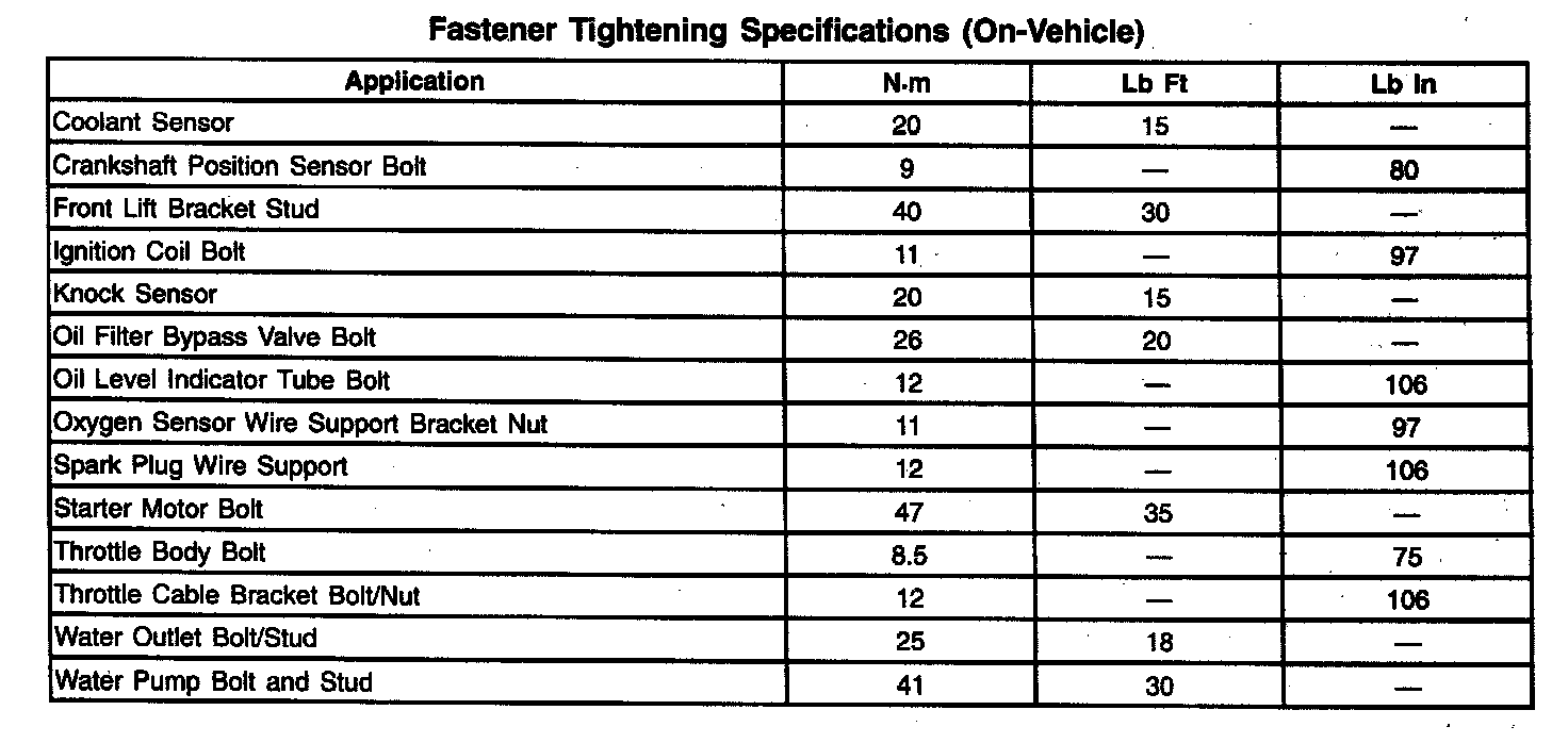Fastener Tightening Specifications - Engine