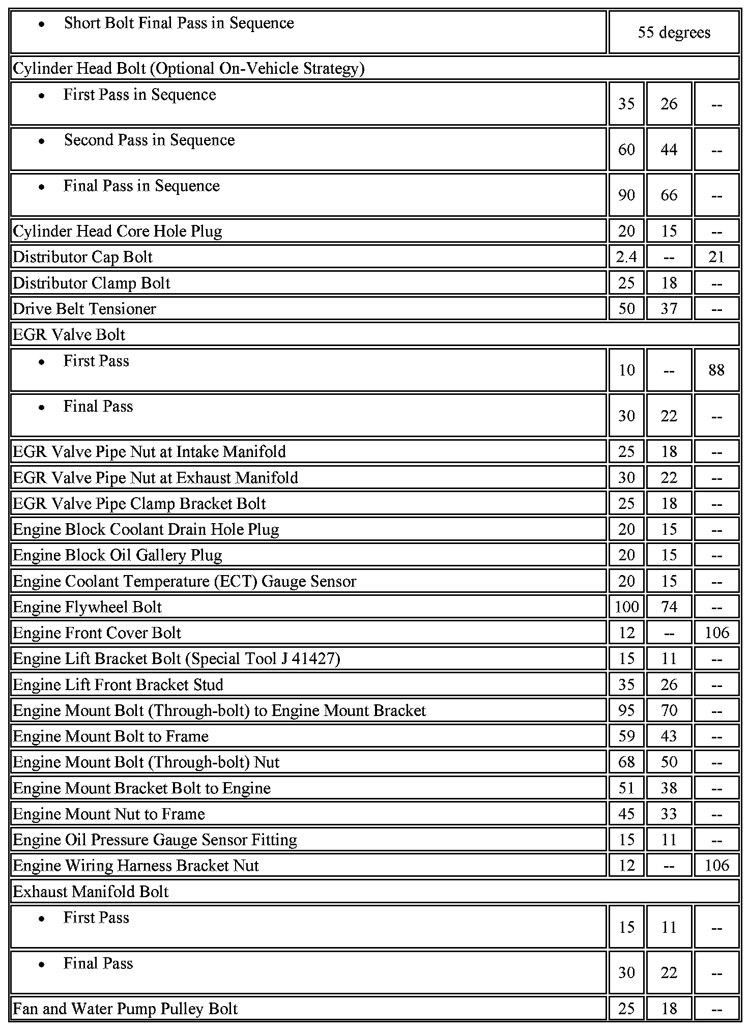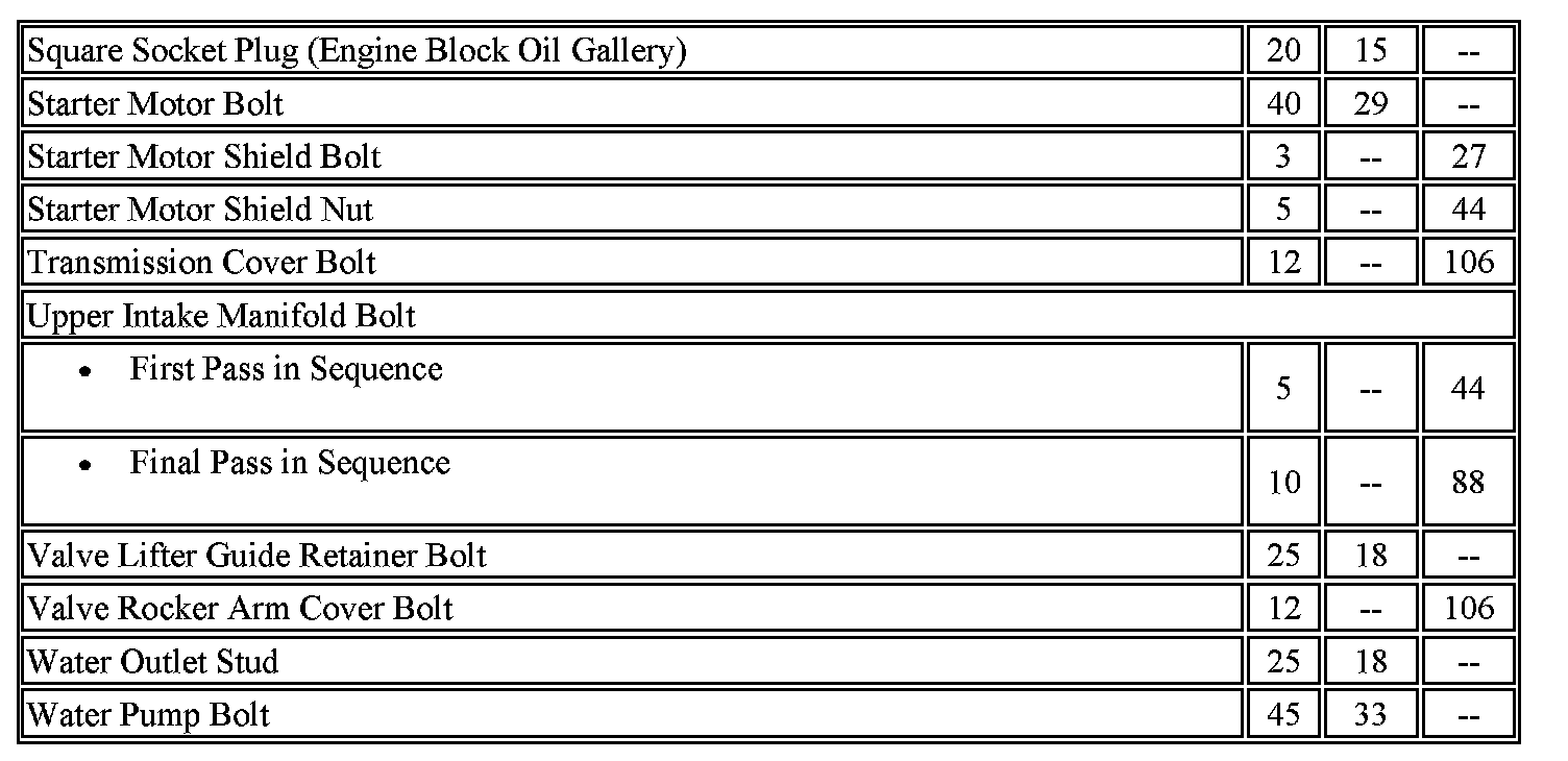 Fastener Tightening Specifications - Engine
