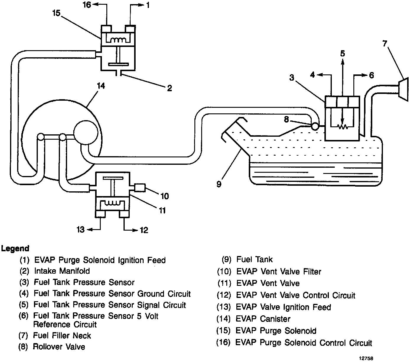 The Evaporative Emission (EVAP) control system uses a switch located in the purge line between the canister and the purge valve to detect when purge is occurring. This switch senses the flow from the engine through the purge valve. When no purge is present, the switch is closed, applying a 12 volt signal to the control module as a NO PURGE signal. When canister purging occurs, the switch opens, interrupting off the 12 volt signal to the control module. A scan tool display will indicate that purge is occurring.