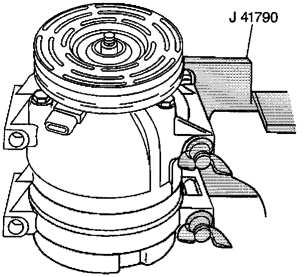 2. Clamp the compressor holding fixture J 41790 in a vise and attach the compressor to the J 41790.