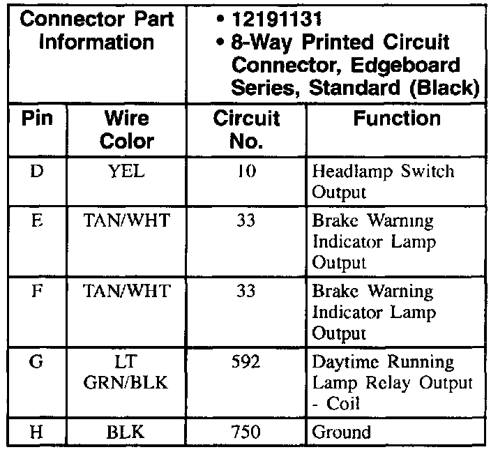 Daytime Running Lamp Module Connector (Part 2 Of 2):