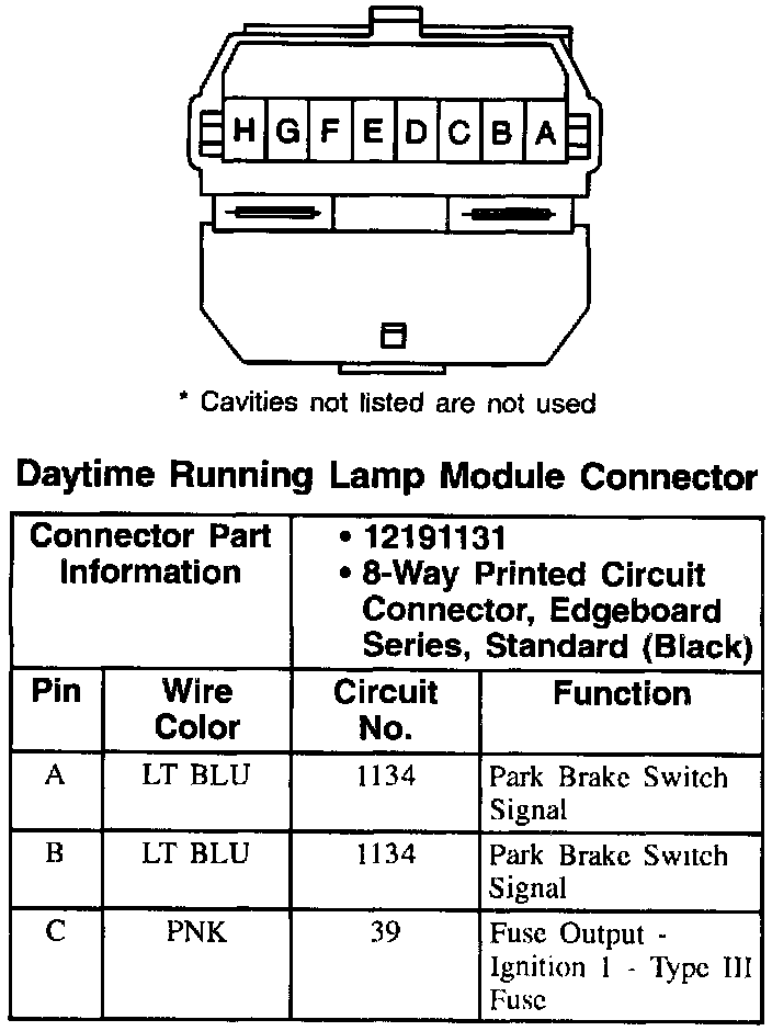 Daytime Running Lamp Module Connector: