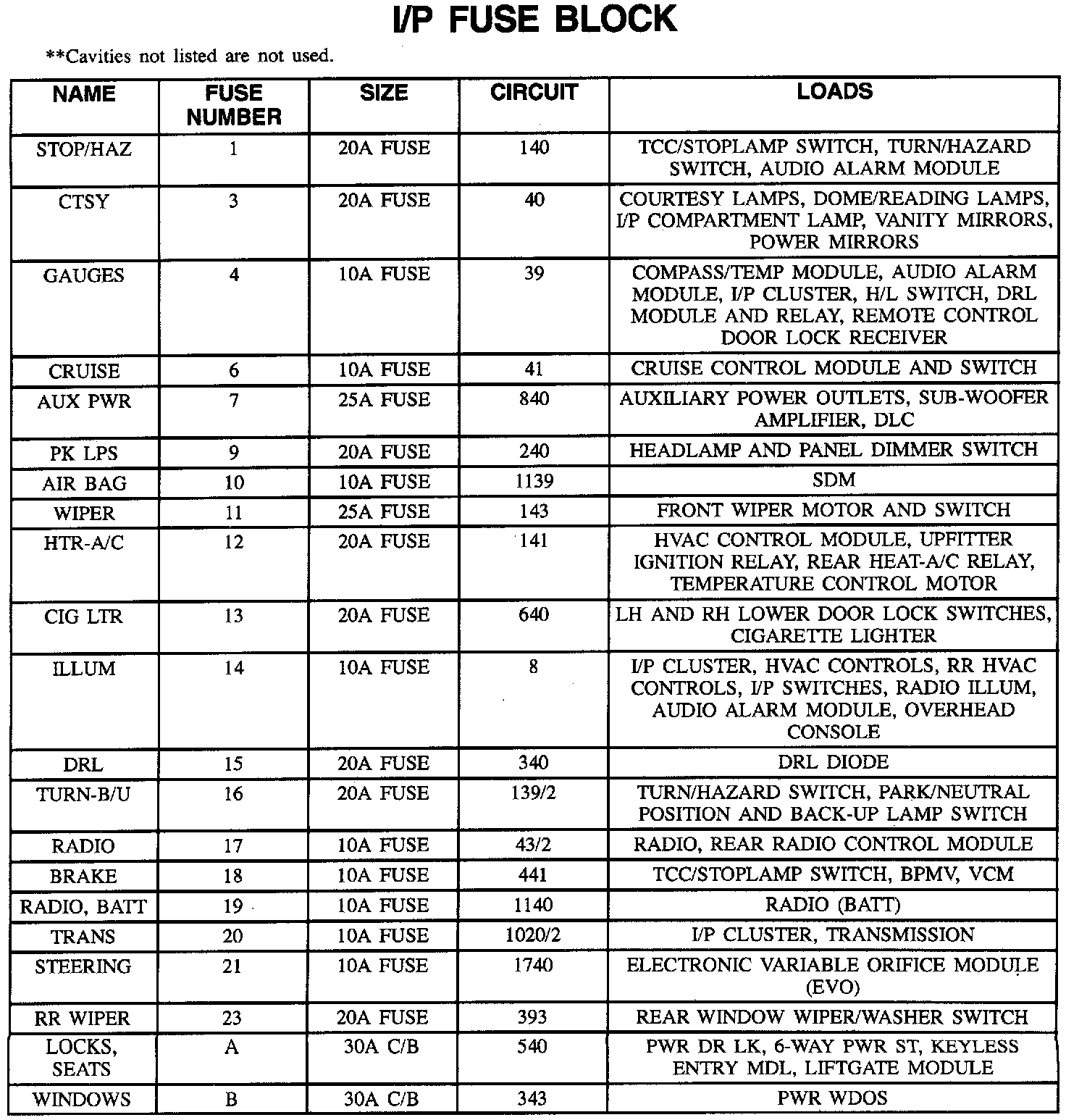 Fuse Block Details: I/P Fuse Block: