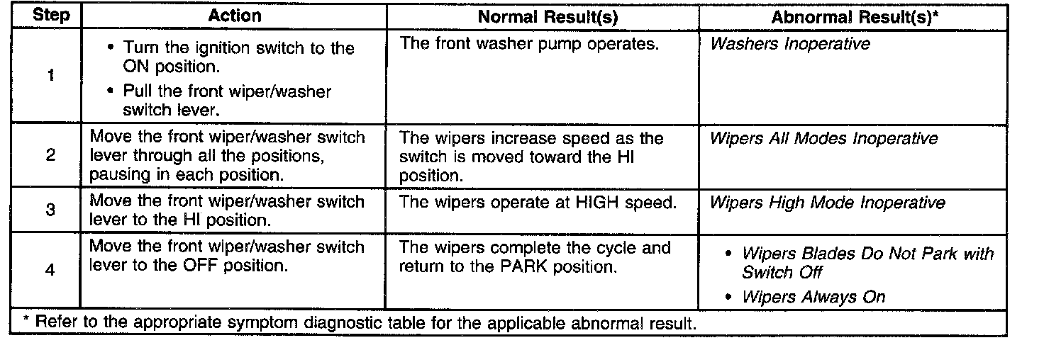 Wiper/Washer System Check: