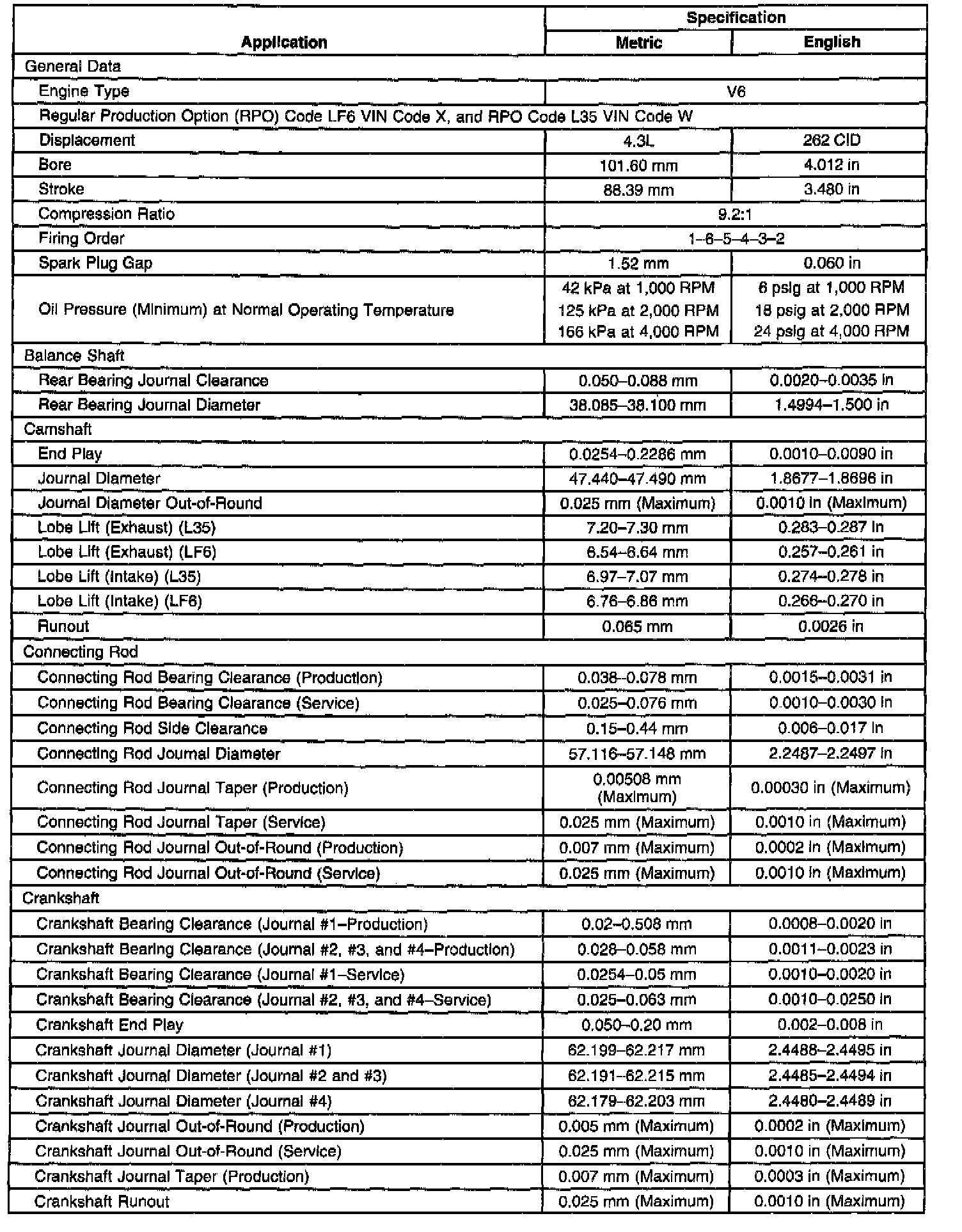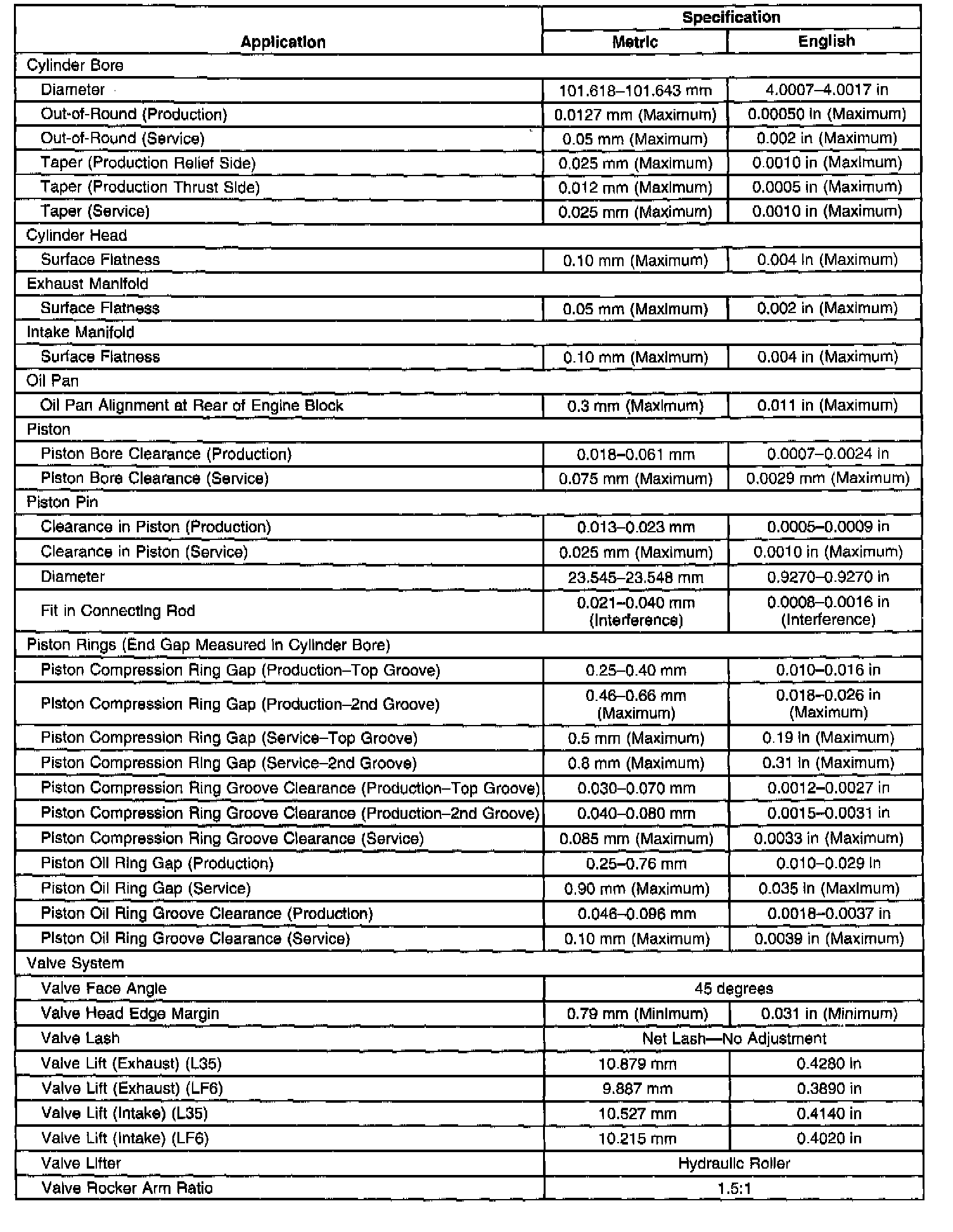 Engine Mechanical Specifications
