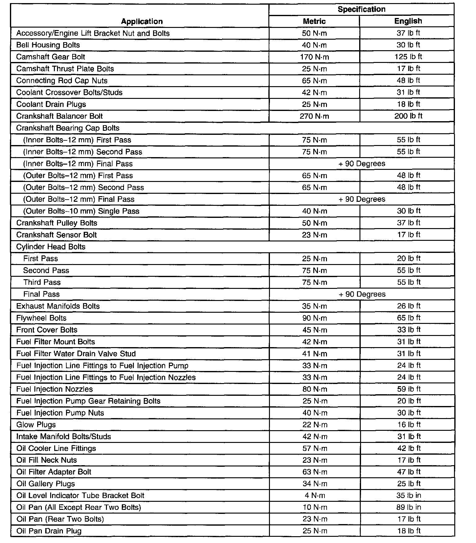 Fastener Tightening Specifications