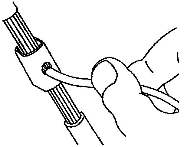 6. Overlap the two stripped wire ends and hold them between thumb and forefinger.