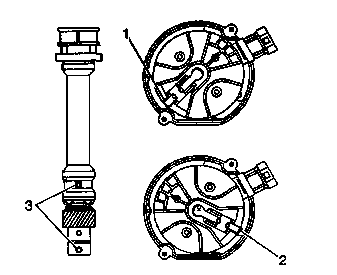^ If the rotor segment is not aligned with the number 1 mark, the driven gear teeth and the camshaft have meshed one or more teeth out of alignment.