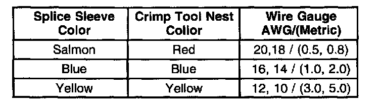 Use crimp and seal splice sleeves to form a one-to-one splice on all types of insulation except tefzel and coaxial to form a one-to-one splice. Use tefzel and coaxial where there is special requirements such as moisture sealing. Follow the instructions below in order to splice copper wire using crimp and seal splice sleeves.TOOLS REQUIRED