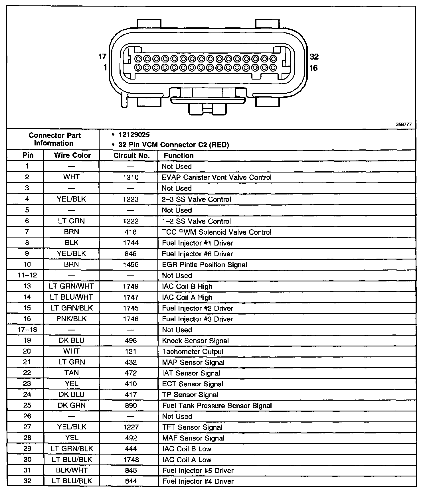 Vehicle Control Module (VCM) Connector C2: