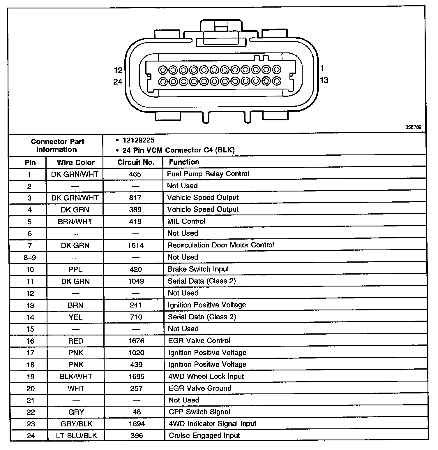Vehicle Control Module (VCM) Connector C4: