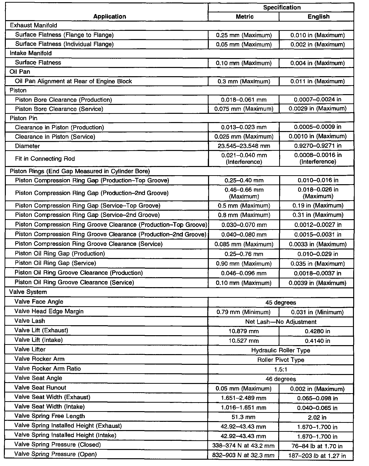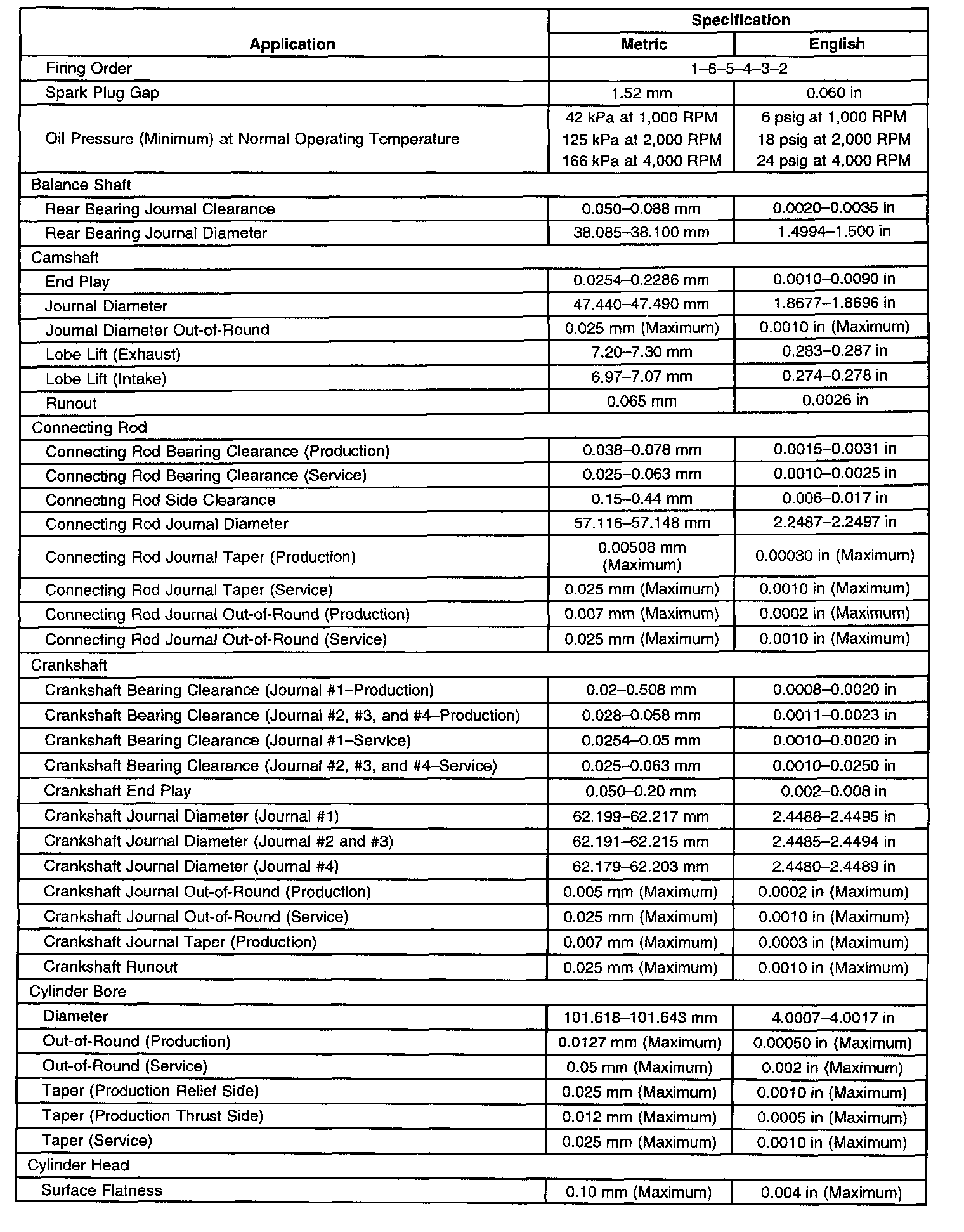 Engine Mechanical Specifications