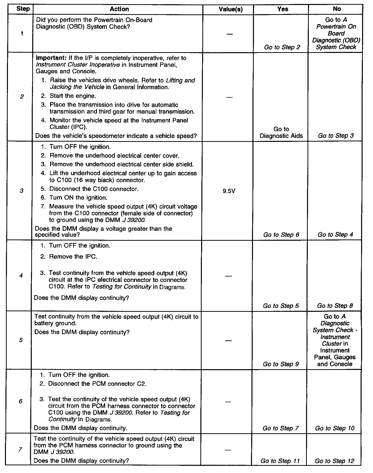 Vehicle Speed Output Circuit DiagnosisDiagnostic Chart (Part 1 Of 2):
