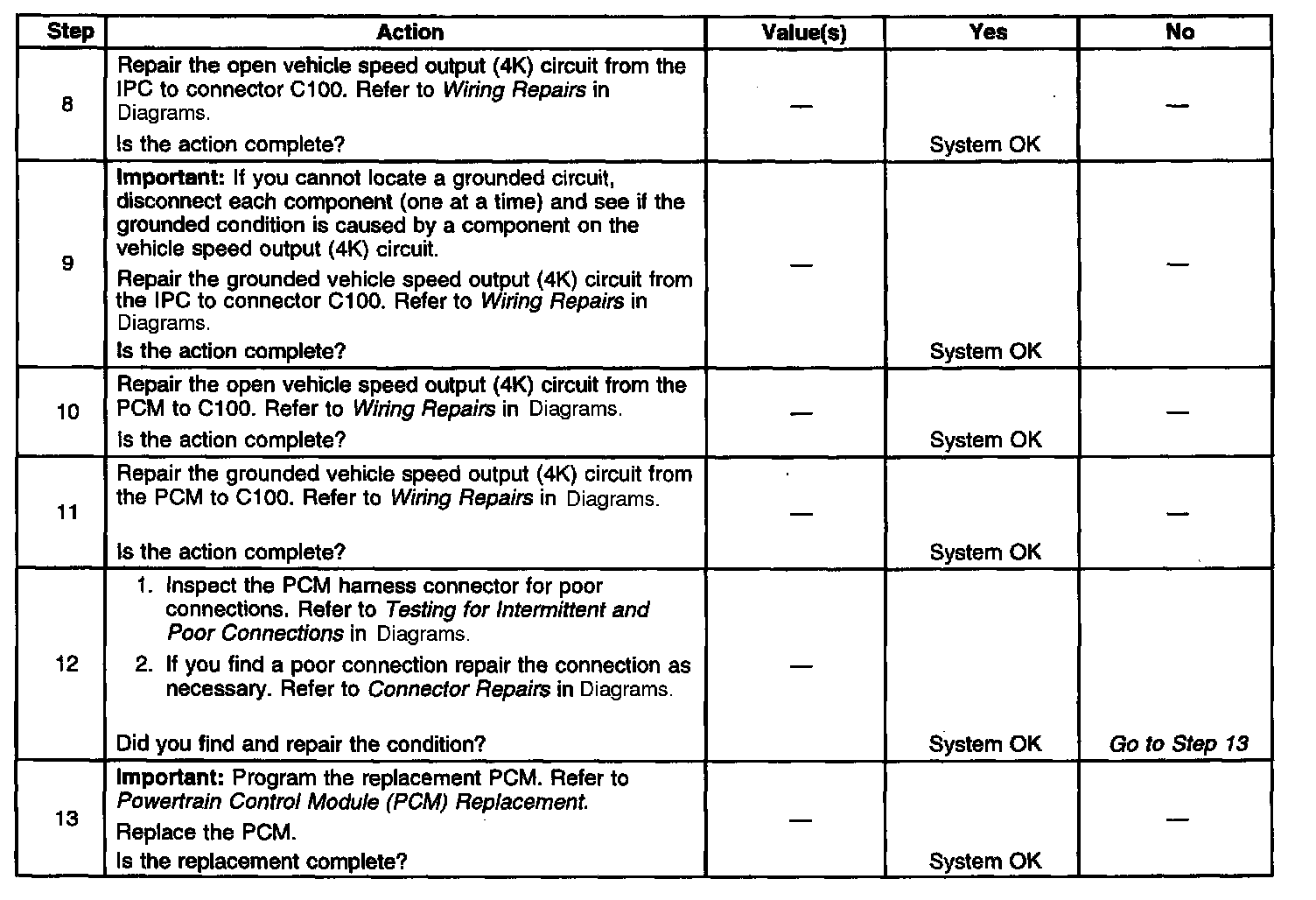 6. This step is testing for an open circuit between the PCM and connector C100.