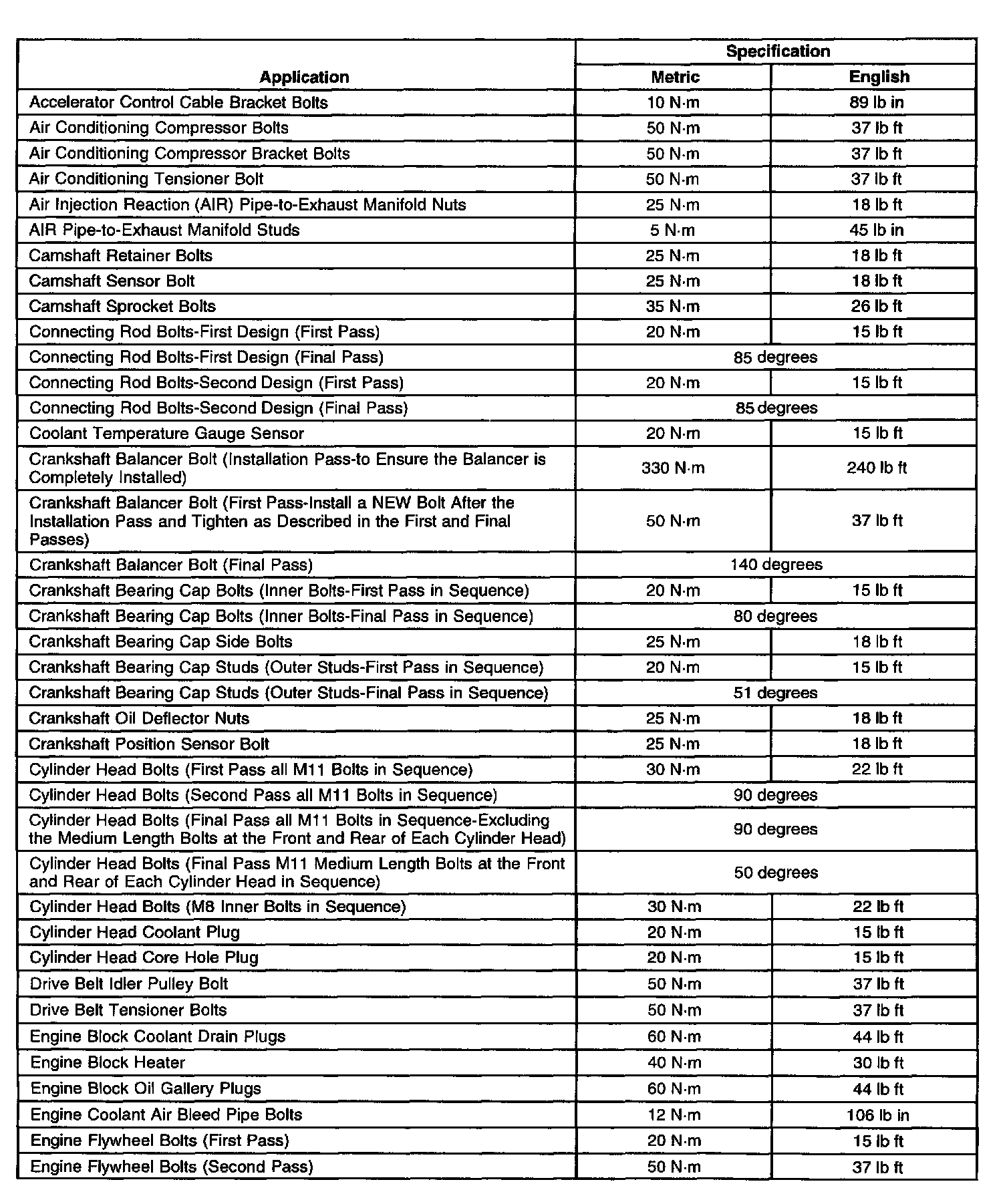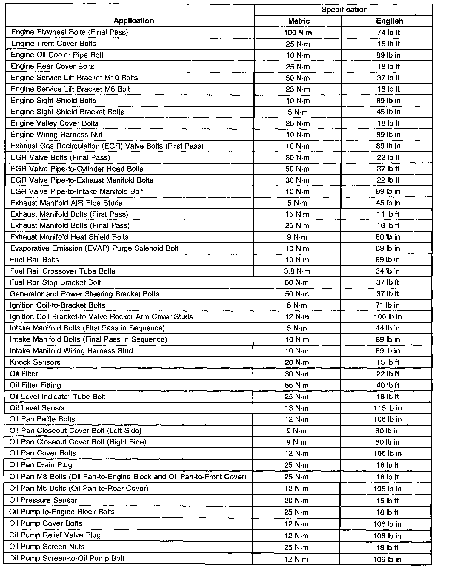 Fastener Tightening Specifications