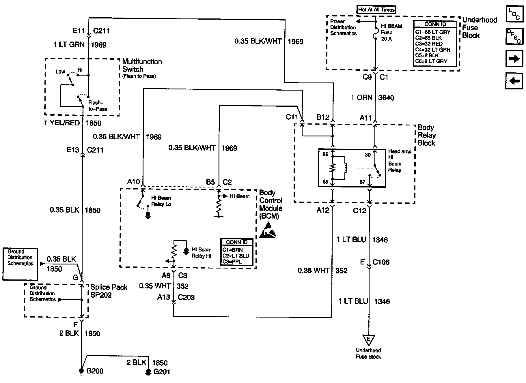 Body Control Module Schematics: Headlamps, High Beam (Envoy):