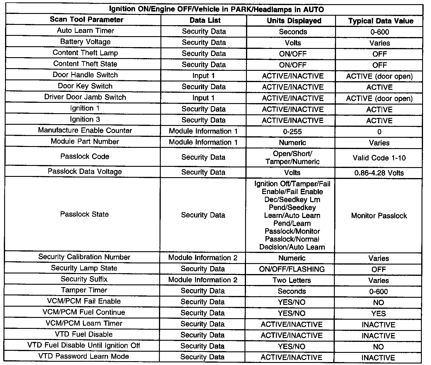 Scan Tool Data List - Antitheft System