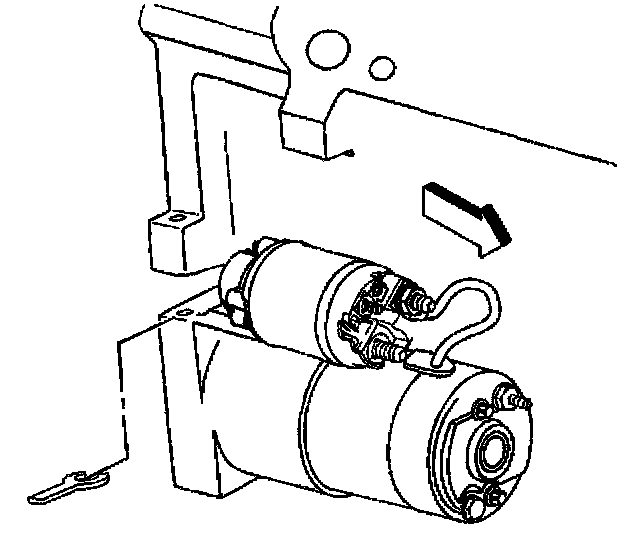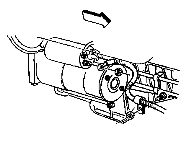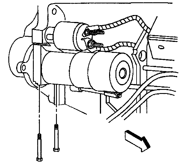 2. Install the starter and the inboard starter mounting bolt. Do not tighten.