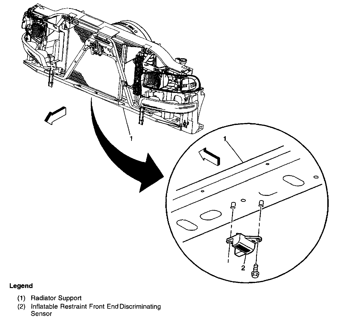 On the underside of the radiator core support