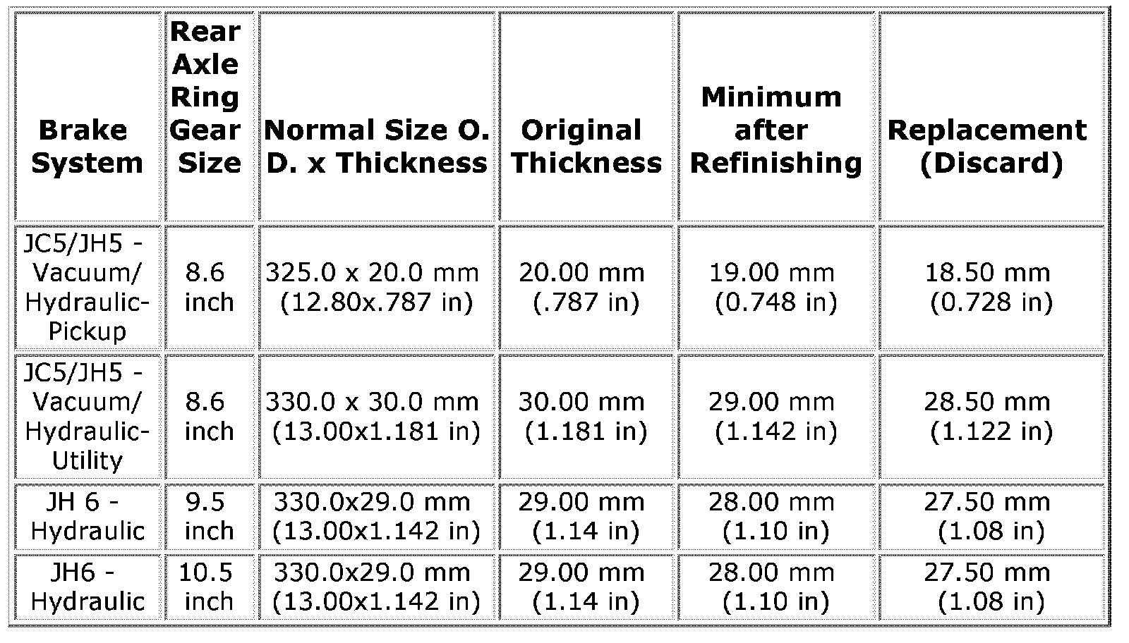 JH6 - Brake System (7300 - 9900 # GVWR) 4 Wheel Disc Brakes